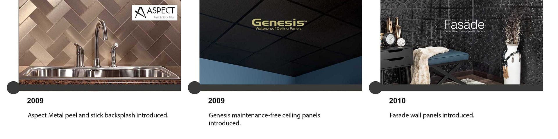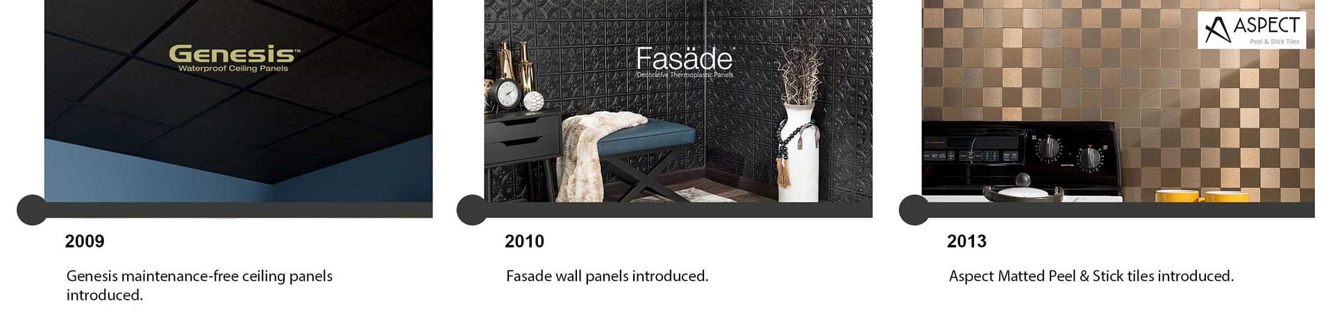 What is it about Fasade decorative thermoplastic panels that make them so appealing to consumers? For well over a decade, our products have been used in homes, offices, stores, schools and hotels around the world. Tastes and styles have changed, and ACP has evolved with the times, still offering the great products and customer service that have been our hallmark for more than a decade.