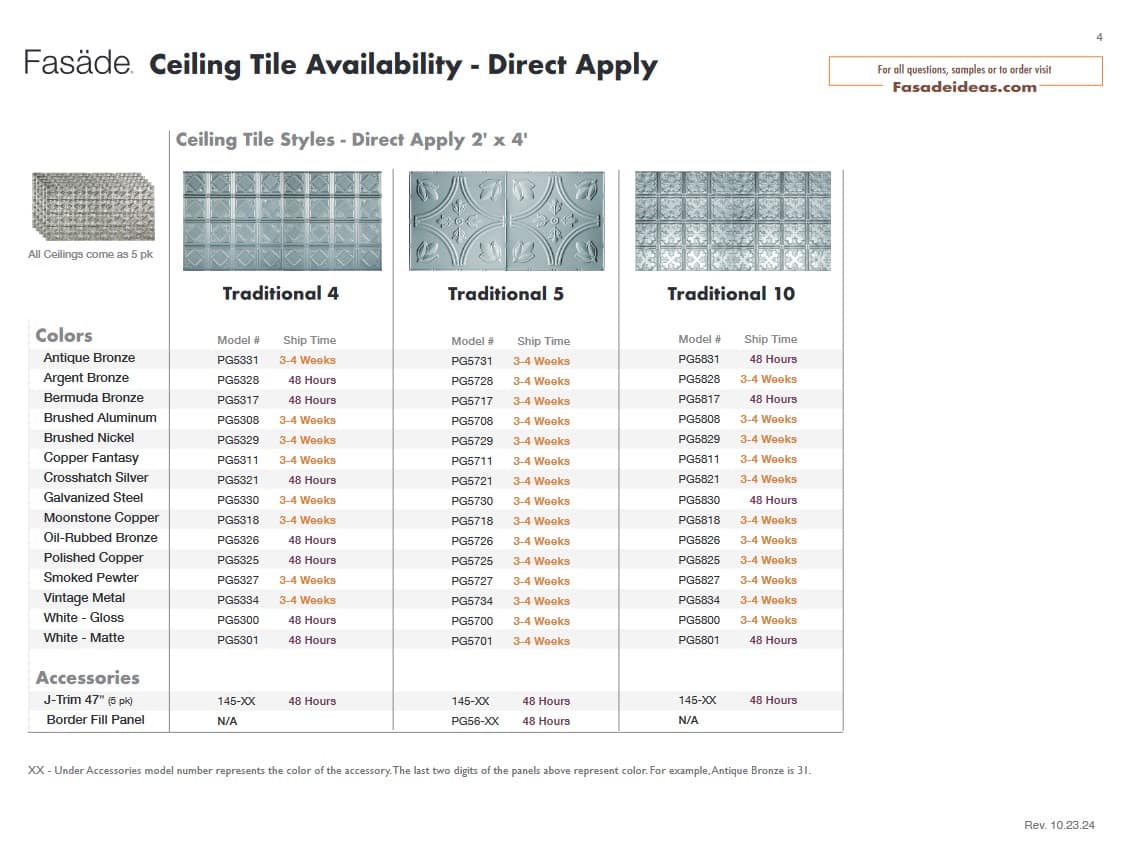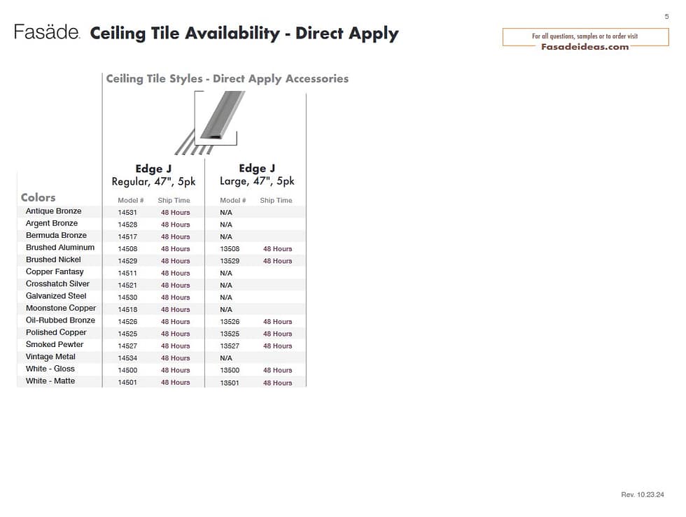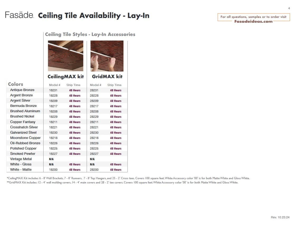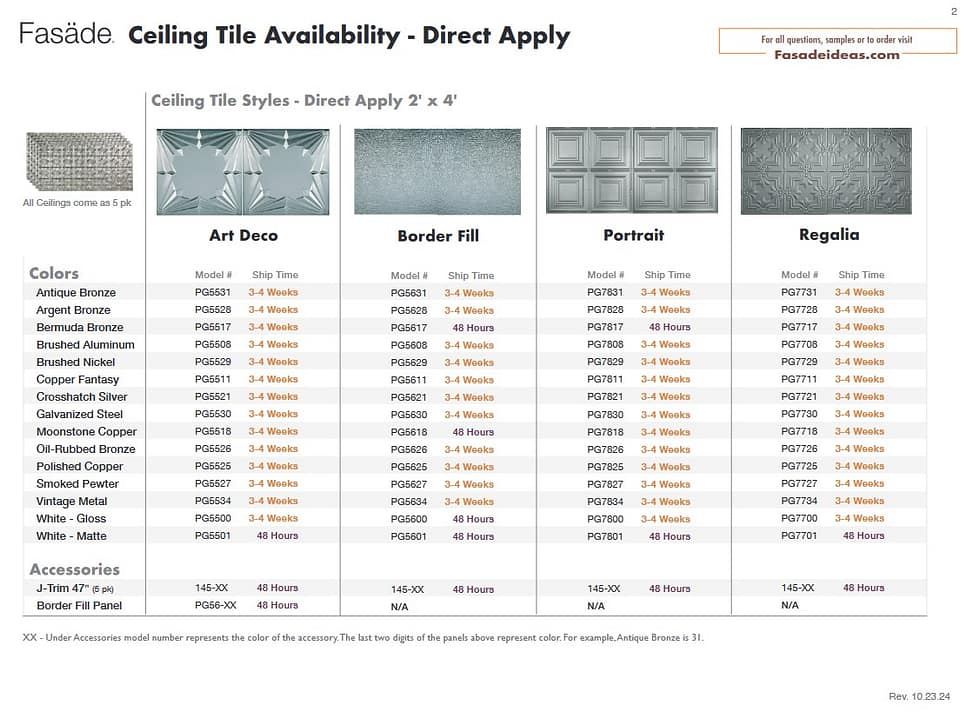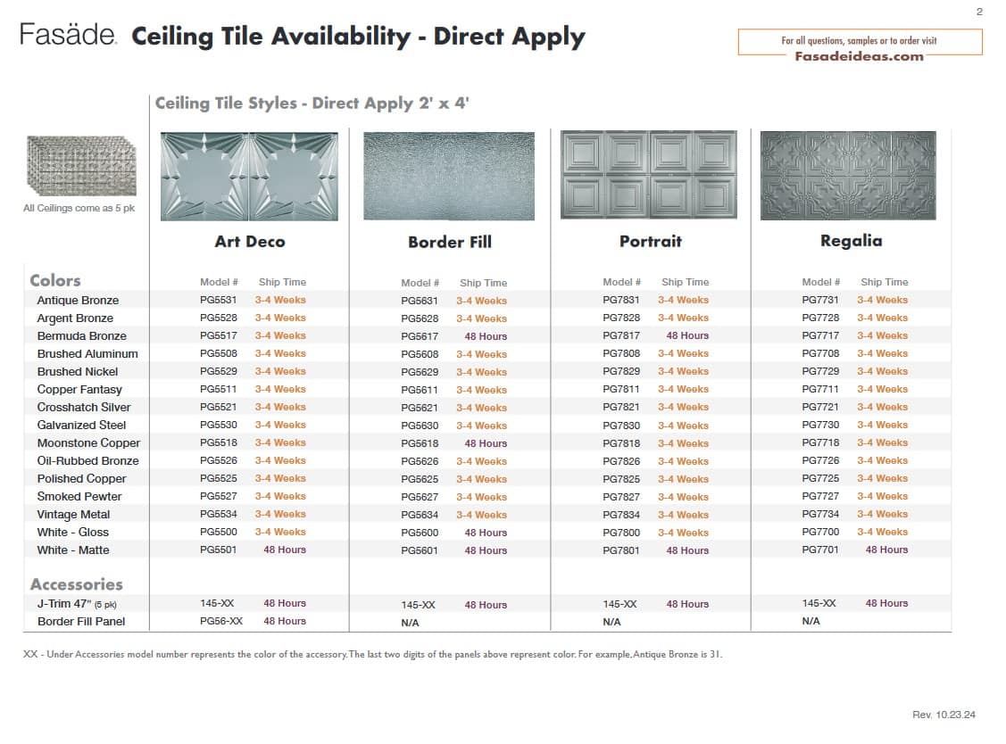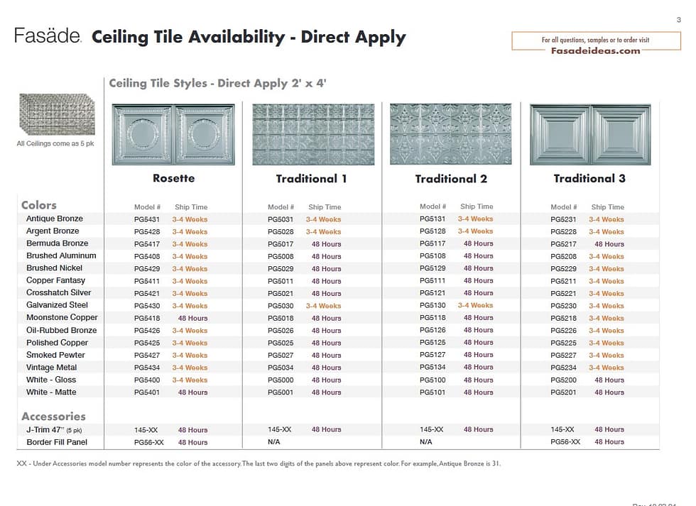 Ceiling Product Availability Direct Apply (Glue Up) Ceiling Lead Times Direct Apply Ceiling Availability PDF Lay-In (Suspended) Ceiling Lead Times Lay-In Ceiling Availability PDF