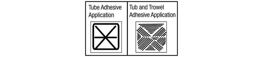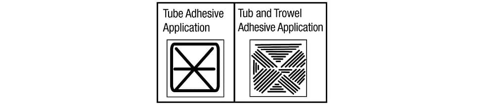 Keep adhesive about 1/2″ from the outside edges to prevent leakage. Carefully read and follow manufacturer’s directions for the adhesive.